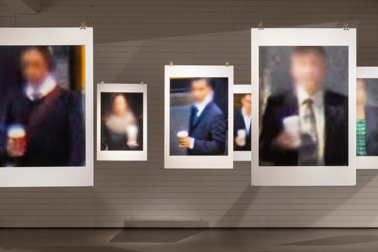 Often the most time-consuming phase is to collect the imagery. For example, to portray people with their to-go cups in Google Street View, I had to “walk” the streets of many cities as it wasn’t possible to search for “person with to-go cup” since the imagery in Street View is not indexed in that way. For my works, I most often search for and collect hundreds or thousands of images, from which I later make a quite narrow selection. For a lot of my works, the most important step is the cropping of the image. It is as much about what is shown in the picture as what I choose to leave out. Or most often – even more about what is left out than what is visible. Not only what is left out by cropping but also details that are lost, or obscured, by digital artifacts or insufficient resolution, caused by an automated process in the creation of the image, or by later editing.