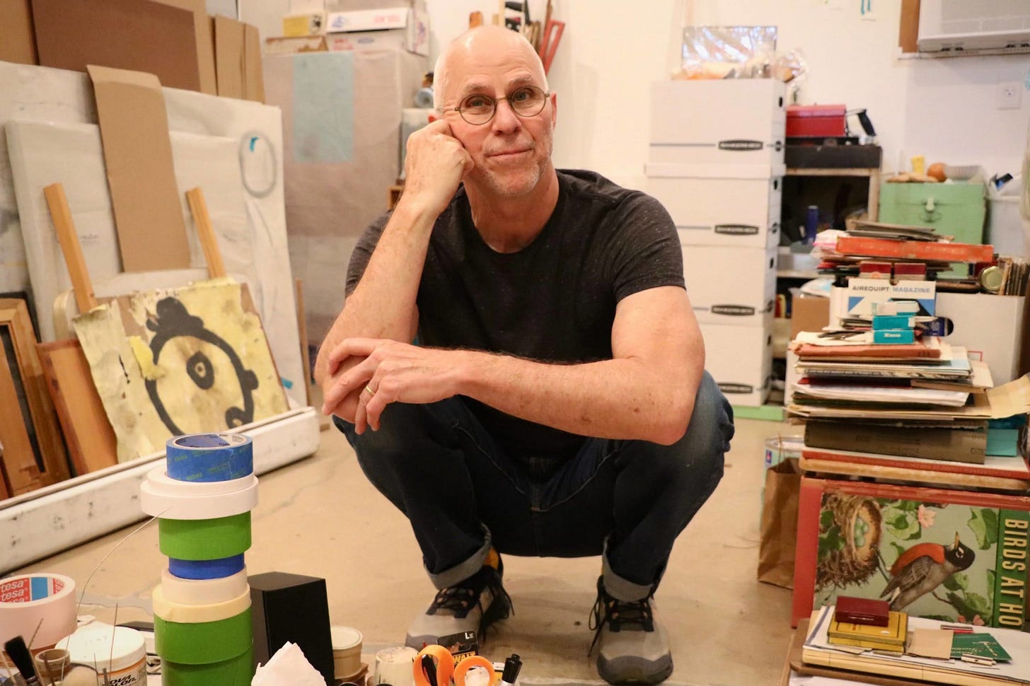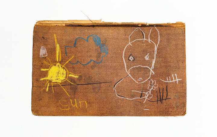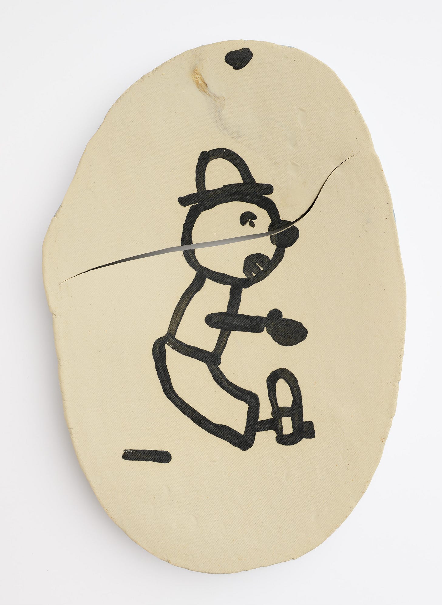 Play doesn’t care if the line is straight, and W. Tucker, an artist based in Austin, Texas, knows this. He approaches his canvases, often made from unconventional materials, with childlike naivety, refusing to impose rigid ideas upon them. Instead, he begins with marks and lines, losing control as his non-dominant hand wanders across the blank spaces. Characters appear like newborns searching for their place in the world. Sometimes they arrive upside down, broken, or oddly shaped; their gaze just slightly askew. Somehow, in their crookedness, they start to look like us. Like me. Like you.